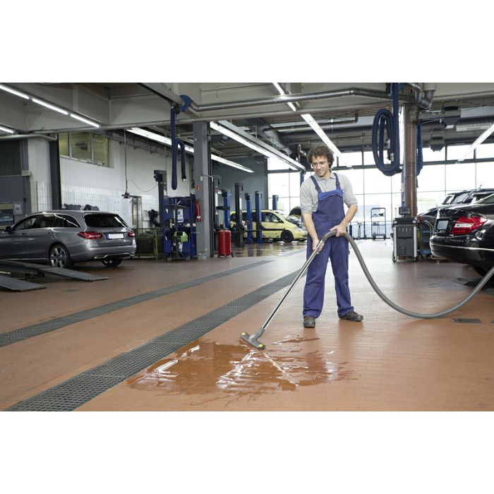 Visokoučinkoviti mokro-suhi usisavač s dva motora za profesionalnu upotrebu. Učinkovito čišćenje plosnatog naboranog filtera pomoću puhanja zraka osigurava konstantno visoku usisnu snagu.