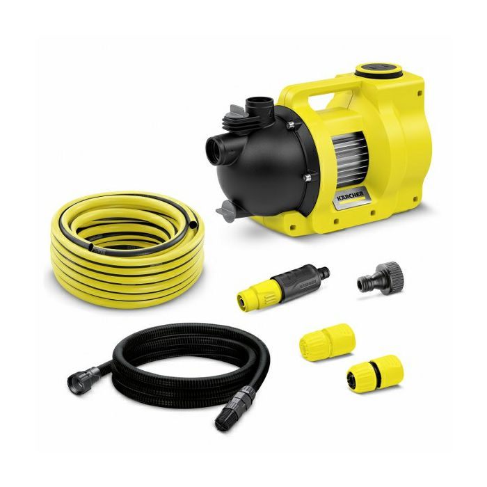 Vrtna pumpa BP 5.000 Garden Set Plus sa spiralnim crijevom otpornim na vakuum od 3,5 m, uključujući filter i nepovratni ventil (priključni navoj G1", promjer 3/4"), i kompletom vrtnih crijeva s crijevom od 20 m Kärcher PrimoFlex (promjer 1/ 2") savršena je za zalijevanje vrta iz slavina ili spremnika. Set vrtnih crijeva također uključuje mlaznicu, priključke i adapter za slavinu. Robusnu pumpu lako je nositi zahvaljujući ergonomskoj ručki. Kärcher vrtne pumpe ne zahtijevaju održavanje i mogu se instalirati bez upotrebe alata, a zahvaljujući velikom nožnom prekidaču možete ih uključiti i isključiti kako biste zaštitili svoja leđa. Visokokvalitetni materijali obećavaju dug vijek trajanja s elektroničkim presostatom, možete nadograditi BP 5000 Garden na automatsku pumpu - za još veću udobnost u vrtu ili pri opskrbi servisnom vodom u kućanstvu.