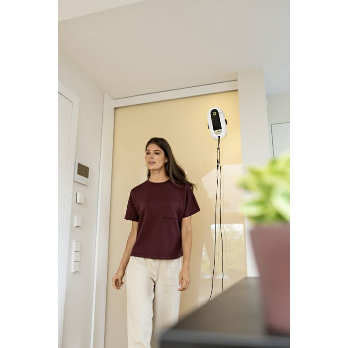 Robot za čišćenje prozora RCW 2 zamjenjuje ručno čišćenje prozora i automatski osigurava čist pogled bez tragova. Zahvaljujući svojoj snažnoj tehnologiji usisavanja, RCW 2 osigurava sigurno prianjanje na svim glatkim površinama, idealno za velike i teško dostupne prozore i ogledala. Sustavna navigacija i dva senzora za detekciju okvira i predmeta osiguravaju brzo i pouzdano čišćenje. Dva rotirajuća diska s krpama od mikrovlakana simuliraju ručno brisanje i osiguravaju blistavo čiste rezultate. Dvije ultrazvučne mlaznice za raspršivanje stvaraju finu maglicu sredstva za čišćenje koje se precizno raspršuje na prozorsko okno bez kapanja. Ovisno o zadatku čišćenja, mogu se odabrati četiri automatska načina čišćenja i jedan ručni način rada te njima praktično upravljati pomoću daljinskog upravljača. Osim toga, LED signali i glasovni izlaz pružaju poruke o statusu u bilo kojem trenutku. Isporučeni čistač prozora RM 503 pouzdano uklanja prljavštinu, suši bez ostavljanja tragova i omogućuje brže otjecanje kiše za dugotrajnu čistoću. Čak i u slučaju nestanka struje, RCW 2 ostaje pričvršćen za prozor zahvaljujući rezervnoj bateriji i sigurnosnom kabelu.