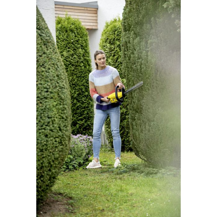 Akumulatorske škare za živicu HGE 18-45 Battery Set iznimno su lagane i štede vam radni napor i bolove u ramenima ili rukama. Njegova ergonomska ručka čini rad udobnim i sigurnim. Dijamantno brušena oštrica omogućuje precizan rezultat rezanja. Dvoručni sigurnosni prekidač sprječava slučajno pokretanje akumulatorskih škara za živicu.