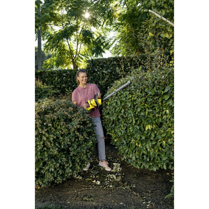 Nema više umornih ramena i ruku na poslu. Zahvaljujući ručki koja se može okretati za 180°, baterijske škare za živicu HGE 18-50 osiguravaju udoban radni položaj u svakom trenutku, na primjer kod okomitih rezova. Osim toga, baterijske škare za živicu sadrže mnoge praktične funkcije. Dvostrani sigurnosni krug sprječava slučajno pokretanje uređaja. Funkciju pile lako obavlja režući deblje grane. Sustav protiv blokiranja osigurava da možete raditi bez prekida. Nastavak za uklanjanje odsječenih grana osigurava da one ne padnu natrag u živicu, već se uklone na tlo. Oštrica na baterijskim škarama za živicu je dijamantna i stoga za sobom ostavlja precizne rezultate rezanja. Dodatni štitnik za oštricu s integriranom ušicom za podizanje štiti zgrade, pod i samu oštricu od oštećenja - i omogućuje da se uređaj objesi na zid kako bi se uštedio prostor.