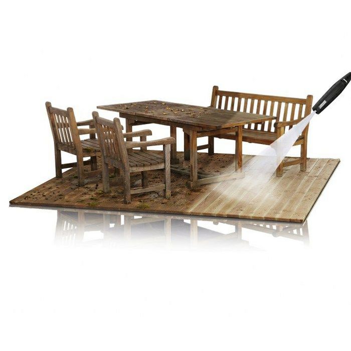 Snažno sredstvo za čišćenje drvenih površina s jedinstvenom formulom 3-u-1, koje vam uz najveću učinkovitost čišćenja zahvaljujući aktivnom sredstvu za otapanje nečistoća nudi i formulu za UV zaštitu i intenzivnu njegu. Za najvišu razinu učinkovitosti čišćenja, njege i zaštite u jednom koraku. Upotrebljivo na svim vanjskim tretiranim i neobrađenim drvenim površinama. Tehnička svojstva: Snažan, intenzivan i nježan prema materijalima Za čišćenje svih osjetljivih drvenih površina Aktivno sredstvo za brzo otapanje prljavštine i učinkovito čišćenje masnih mrlja, rasta biljaka i tragova emisija. Učinkovita formula UV zaštite usporava tamnjenje drva Intenzivna zaštita drvenih površina kao što su terase, ograde, drvene kuće i sl. Prikladno za sve vodootporne drvene površine Sustav Plug 'n' Clean najlakši je i najbrži način nanošenja sredstva za čišćenje pomoću visokotlačnog uređaja za čišćenje Biorazgradivo prema OECD-u Sredstvo za čišćenje spremno za upotrebu (RTA, Ready-to-use)