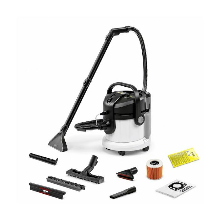 Učinak dubinskog čišćenja u kombinaciji s ergonomskim dizajnom i svestranošću: SE 4 čistač s raspršivačem atraktivnog dizajna osigurava higijensko čišćenje brojnih tekstilnih površina. Dokazana Kärcherova tehnologija ekstrakcije raspršivanjem osigurava najbolje rezultate čišćenja: svježa voda iz slavine i Kärcher RM 519 sredstvo za čišćenje tepiha raspršuju se pod pritiskom duboko u tekstilna vlakna i zatim se usisavaju natrag zajedno s opuštenom prljavštinom – idealno za obitelji, alergičare i kućanstva s kućnim ljubimcima. Uređaj je 3-u-1 višenamjenski proizvod koji također funkcionira kao kompletan mokri i suhi usisavač. Veliki, prozirni spremnik svježe vode od 4 litre otporan je na udarce i može se ukloniti, što ga čini jednostavnim za punjenje i pražnjenje. Prljava voda koja se usisava skuplja se u posudu. 3-u-1 ručka za nošenje dizajnirana je za jednostavno nošenje, otvaranje, zatvaranje i pražnjenje spremnika. Priloženi pribor može se uredno pohraniti na samom uređaju. Uređaj se lako čisti nakon upotrebe, što osigurava dug vijek trajanja proizvoda.