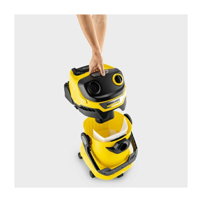 Snažno, energetski učinkovito rješenje za čišćenje ui oko kuće: usisavač za mokro i suho usisavanje WD 5 V-25/5/22 nudi optimalne rezultate čišćenja s mokrom, suhom, finom ili grubom prljavštinom uz potrošnju energije od 1100 W .Usisivač ima robusnu plastičnu posudu od 25 litara, kabel od 5 metara, usisnu cijev dugu 2,2 m, izmjenjivu podnu mlaznicu, pljosnati filtar s kojim možete kontinuirano usisavati mokru i suhu prljavštinu te filtar vrećicu. Zahvaljujući patentiranoj tehnologiji, filter se može ukloniti u nekoliko sekundi, izbjegavajući kontakt s prljavštinom, a pritiskom na tipku za čišćenje filter se može učinkovito očistiti i vratiti usisnu snagu. Uklonjivi nastavak omogućuje pričvršćivanje dodataka izravno na usisno crijevo, koje se može pričvrstiti na glavu usisavača, čime se štedi prostor. Prostor za odlaganje na usisavaču omogućuje brzo i praktično odlaganje crijeva i podne mlaznice tijekom kratke pauze od rada.