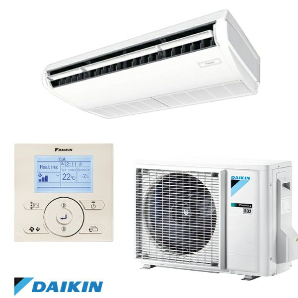 Unutarnja jedinica podstropne izvedbe s maskom predviđena za montažu uz strop s jednim smjerom istrujavanja opremljena ventilatorom, 3-brzinskim elektromotorom, izmjenjivačem topline s direktnom ekspanzijom freona, te svim potrebnim elementima za zaštitu, kontrolu i regulaciju uređaja i temperature. Jedinica ima mogućnost rada sa R-32 i R-410A radnom tvari. Vanjska jedinica split sustava, namijenjena za vanjsku montažu - zaštićena od vremenskih utjecaja, s ugrađenim inverter kompresorom, zrakom hlađenim kondenzatorom i svim potrebnim elementima za zaštitu, kontrolu i regulaciju uređaja i funkcionalni rad. Rashladni medij je R-32.