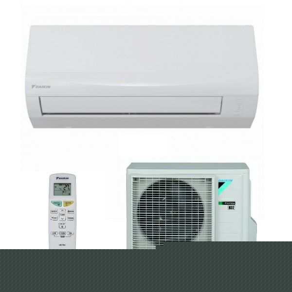 Unutarnja jedinica zidne izvedbe predviđena za montažu na zid opremljena je ventilatorom, 3-brzinskim elektromotorom, izmjenjivačem topline s direktnom ekspanzijom freona, te svim potrebnim elementima za zaštitu, kontrolu i regulaciju uređaja i temperature. Visokoučinkovita jedinica dostiže oznaku A++ u hlađenju. Tih i neometan rad s razinom buke od 21 dBA omogućuje da jedinica neprimjetno pruža visoku razinu komfora. Vanjska jedinica split sustava, namijenjena za vanjsku montažu - zaštićena od vremenskih utjecaja, s ugrađenim inverter kompresorom, zrakom hlađenim kondenzatorom i svim potrebnim elementima za zaštitu, kontrolu i regulaciju uređaja i funkcionalni rad. Rashladni medij je R-32. Zajedničke tehničke karakteristike uređaja: Nazivna učinkovitost (hlađenje 35°C/27°C, grijanje 7°C/20°C) Hlađenje: Qh = 2,0 kW (1,3-2,6) EER= 3,94 Oznaka energetske učinkovitosti: A N = 0,51 kW / 230 V - 50 Hz Grijanje: Qg = 2,5 kW (1,3-3,0) COP= 4,19 Oznaka energetske učinkovitosti: A N = 0,60 kW / 230 V - 50 Hz Sezonska učinkovitost (u skladu s EN14825) Hlađenje: Pdesign= 2,0 kW SEER= 6,15 Oznaka energetske učinkovitosti: A++ Godišnja potrošnja energije: 114 kWh Grijanje: Pdesign= 2,2 kW SCOP = 4,1 Oznaka energetske učinkovitosti: A+ Godišnja potrošnja energije: 751 kWh Radno područje: grijanje: od -15 do 18°C Radno područje: hlađenje: od -10 do 46°C Priključak R32: tekuća faza: 6,35 mm Priključak R32: plinovita faza: 9,52 mm Unutarnja jedinica: Proizvod Daikin tip Sensira: FTXF20A N(ukupno)= 0,017 / 0,02 kW - 220 V - 50 Hz Protok zraka: hlađenje: 5,9 - 9,8 m3/min Protok zraka: grijanje: 6,5 - 10,3 m3/min Nivo zvučnog tlaka: hlađenje: 20/25/33/39 dBA Nivo zvučnog tlaka: grijanje: 21/28/34/39 dBA Nivo zvučne snage: hlađenje: 55 dB(A) Nivo zvučne snage: grijanje: 55 dB(A) Dimenzije: 770 x 225 mm ; h = 268 mm Težina: 9 kg Boja kućišta: Bijela Vanjska jedinica: Kao proizvod Daikin tip: RXF20A Protok zraka: hlađenje: 27,6 m3/min Protok zraka: grijanje: 26,2 m3/min Nivo zvučne snage: hlađenje: 60 dBA Nivo zvučne snage: grijanje: 61 dBA Nivo zvučnog tlaka: hlađenje: 46 dBA Nivo zvučnog tlaka: grijanje: 47 dBA Dimenzije: 658 x 275 mm ; h = 550 mm Težina: 28 kg Maksimalna duljina cjevovoda od unutarnje do vanjske jedinice 15m, od toga visinski 12 m. Napajanje: 220-240 V / 50 Hz ~ 1 Razmak između nogica: 574mm Stavka uključuje bežični daljinski upravljač sa 7-dnevnim timerom. FTXF20A+RXF20A+IR
