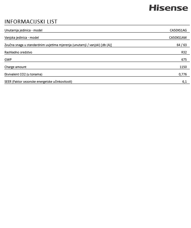 Inverterski klima uređaj Hisense CA50XS1AG-CA50XS1AW Easy Smart