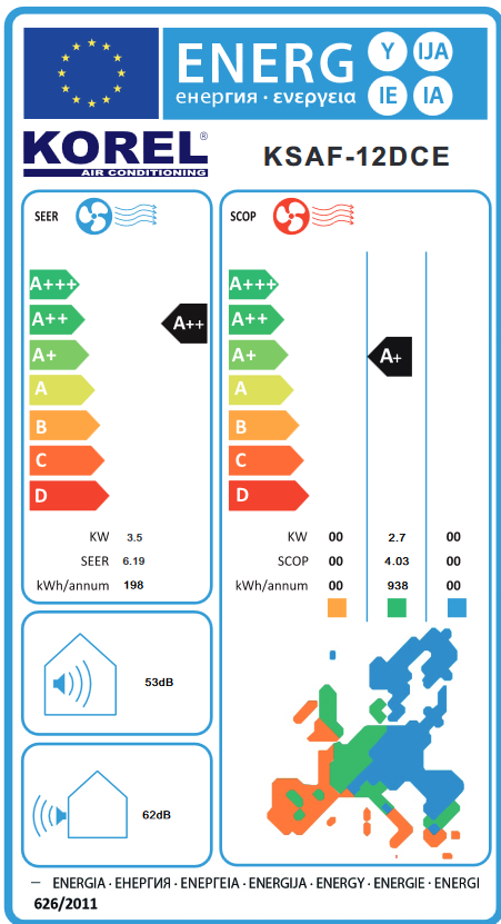 Korel Forward KSAFW-12DCE WiFi Inverterski klima uređaj Korel Forward Energetska klasa (hlađenje): A++ Energetska klasa (grijanje): A+ Kapacitet hlađenja (kW): 3,4 Kapacitet grijanja (kW): 3,5 Raspon učinka grijanja (W): 0,8 - 4,0 Veličina prostora (hlađ.): 25 - 40 m2 Područje rada hlađenje (°C): -15/+48 Područje rada grijanje (°C): -15/+32 Raspon učinka hlađenja (W): 0,8 - 3,8 WiFi upravljanje Daljinski upravljač: bežični (infracrveni) Samočišćenje Samodijagnoza Boja: bijela Promjer cijevi tekuća faza: 6,35 (1/4") Promjer cijevi plinska faza: 9,52 (3/8") Napajanje (ph-V-Hz): 1-220-50 Težina vanjske jedinice (kg): 18,5 Dimenzije vanj. j. VxŠxD (mm): 649x456x244 Dimenzije unut. j. VxŠxD (mm): 750x285x200 SCOP: 4,0 SEER: 6,2 Radna tvar: R32 Težina unutarnje jedinice (kg): 7,5 Razina zvučne snage v.j.(dB(A): 61 Razina zvučne snage u.j.(dB(A): 54 Brzo hlađenje: turbo Protok zraka vanj. j. (m3/h): 1550 Protok zraka unut. j. (m3/h): 600 Max. duljina cjevovoda (m): 20 Inverter Max. visinska razlika (m): 10
