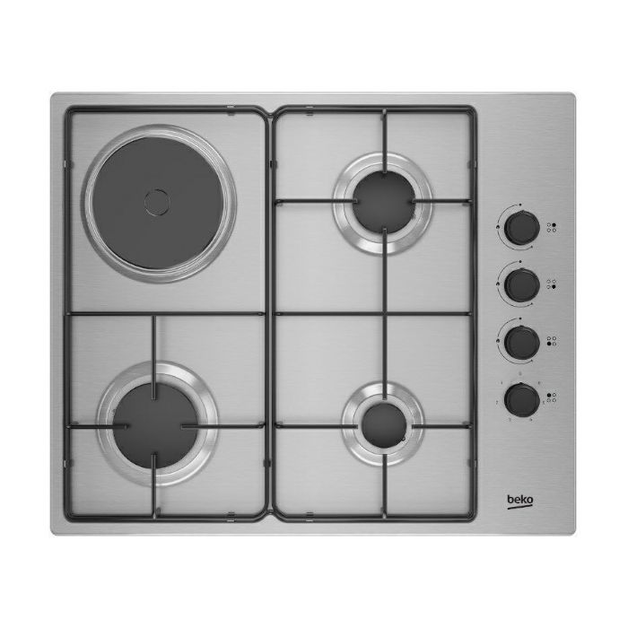 Beko HIGM64123SX Kombinirana ploča Beko Širina: 61 cm Visina: 4,4 cm Dubina: 51 cm 3 plinska plamenika + 1 električna grijaća ploha IndyFlex+ ploča za kuhanje s bočnom kontrolom 60 cm Plinski plamenici visokih performansi Brže i učinkovitije kuhanje zahvaljujući posebnom dizajnu plamenika Ukupna snaga plina: 5900 W Ukupna snaga struja: 1000 W Boja kućišta: nehrđajući čelik Integrirano paljenje Emajlirana rešetka Težina: 8,1 kg Dimenzije uotvora za ugradnju (mm): 560 × 490