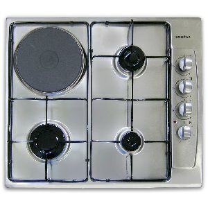 Končar UKEP 6013 PON.SV2Boja: inoxVisina/ Širina/ Dubina kuhala: 58x51 cmVisina/ Širina/ Dubina otvora u kuh.elementu: 56x49 cmPrednje lijevo mjesto za kuhanje: plinski plamenik 3 kWPrednje desno mjesto za kuhanje: plinski plamenik 1 kWStražnje lijevo mjesto za kuhanje: el. obična grijaća ploča o18cm/1,5kWStražnje desno mjesto za kuhanje: plinski plamenik 1,75 kWPaljenje električnom iskromPlamenici s osiguranjemSignalno svjetlo radaRadna ploča: inoxNosač posuda: emajliranPlinski priključak: G20/20 mbar