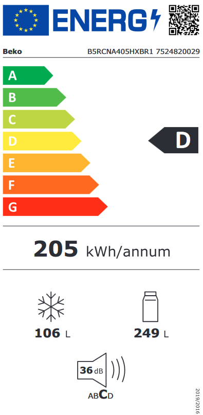 Ukupna zapremina (l): 355 l Ukupna zapremina odjeljka za svježu hranu i rashlađivanje (l): 249 Ukupna zapremina zamrzivača (l): 106 Eco Function Vacation Mode Dnevni kapacitet zamrzavanja (kg/dan): 6 SlimTank dispenzer za vodu Promjena smjera postavljanja vrata SmoothFit LED osvjetljenje Klasa energetske učinkovitosti: E Godišnja potrošnja električne energije (kWh/godišnje): 256 Klimatska klasa: SN-ST Boja: aluminij srebrna Klasa emisije zvuka: C Vrijeme čuvanja temperature hrane pri nestanku struje (sati): 11 Visina: 203,5 cm Širina: 59,5 cm Dubina: 66,3 cm Težina: 76,1 kg