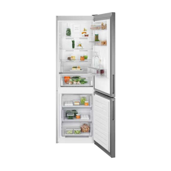Neto zapremnina odjeljka za zamrzavanje, l: 94 Neto zapremnina hladnjaka, l: 230 Automatsko odmrzavanje zamrzivača Automatsko odmrzavanje rashladnog pretinca Osvjetljenje hladnjaka: LED na gornjoj ploči Položaj šarki na vratima: desno, mogućnost promjene smjera otvaranja vrata Podesive nožice Tehnologija hlađenja u zamrzivaču: No frost Ventilator: MultiFlow Posebne ladice hladnjaka: No Trims Dimenzije VxŠxD, mm: 1860x595x650 Duljina kabela, m: 2.5 Energetska klasa: E Klimatska klasa: SN-N-ST-T Boja: siva + antifinger inox izgled