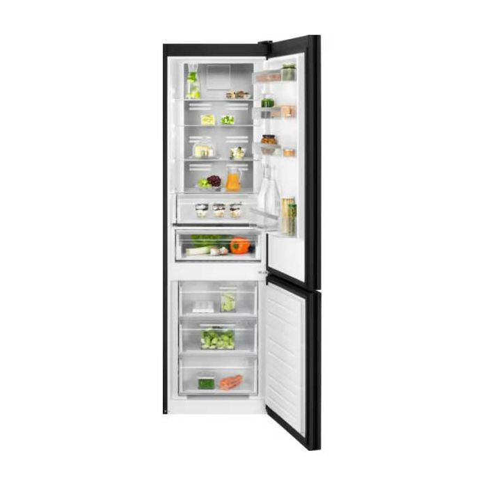 Neto zapremnina odjeljka za zamrzavanje, l: 94 Neto zapremnina hladnjaka, l: 244 Razina buke: samo 42 dB Automatsko odmrzavanje zamrzivača Automatsko odmrzavanje rashladnog pretinca Osvjetljenje hladnjaka: LED u unutrašnjosti, sa strane Položaj šarki na vratima: desno, mogućnost promjene smjera otvaranja vrata Podesive nožice Tehnologija hlađenja u zamrzivaču: No frost Ventilator: 360 metal Način ugradnje: samostojeći uređaj Šarke vrata: desno, mogućnost promjene smjera otvaranja vrata Dimenzije VxŠxD, mm: 2010 x 595 x 662 Duljina kabela, m: 2.5 Energetska klasa: E Klimastka klasa: SN-N-ST-T Godišnja potrošnja struje: 250 kW Boja: Black+Glass Broj termostata: 2 Tip upravljačke kontrole: Touch electronic control Osvjetljenje unutrašnjosti hladnjaka: LED u unutrašnjosti, sa strane Broj ladica u zamrzivaču: 2 duboke + 1 poluduboka Tip ladica zamrzivača: prozirna plastična Vrata rashladnog uređaja: R600a