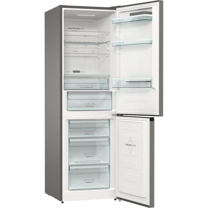 Superior Line Energetski razred: C Energetski razred buke: B Boja aparata: metalik siva Boja vrata Tamnosivi brušeni nehrđajući čelik Ukupni volumen: 326 l Obujam rashladnog dijela: 194 l Zapremnina rashladnog pretinca: 26 l Obujam zamrzivačkog dijela: 106 l Kapacitet zamrzavanja u 24 sata: 13 kg Vrijeme čuvanja u slučaju nestanka el.energije: 9 h Procijenjena godišnja potrošnja električne energije: 164.98 kWh Moguće upravljanje putem Wi-Fi mreže SuperCool brzo hlađenje IonAir s MultiFlow 360° ConvertActive NoFrost Plus Štedljivi program EcoMode Žičani nosač za boce 1 MultiBox posudica Razina buke (max.): 35 dB(A) 1 inverterski kompresor Rashladna tekućina: R600a Širina proizvoda: 600 mm Visina proizvoda: 1850 mm Dubina proizvoda: 663 mm Neto težina proizvoda: 64 kg