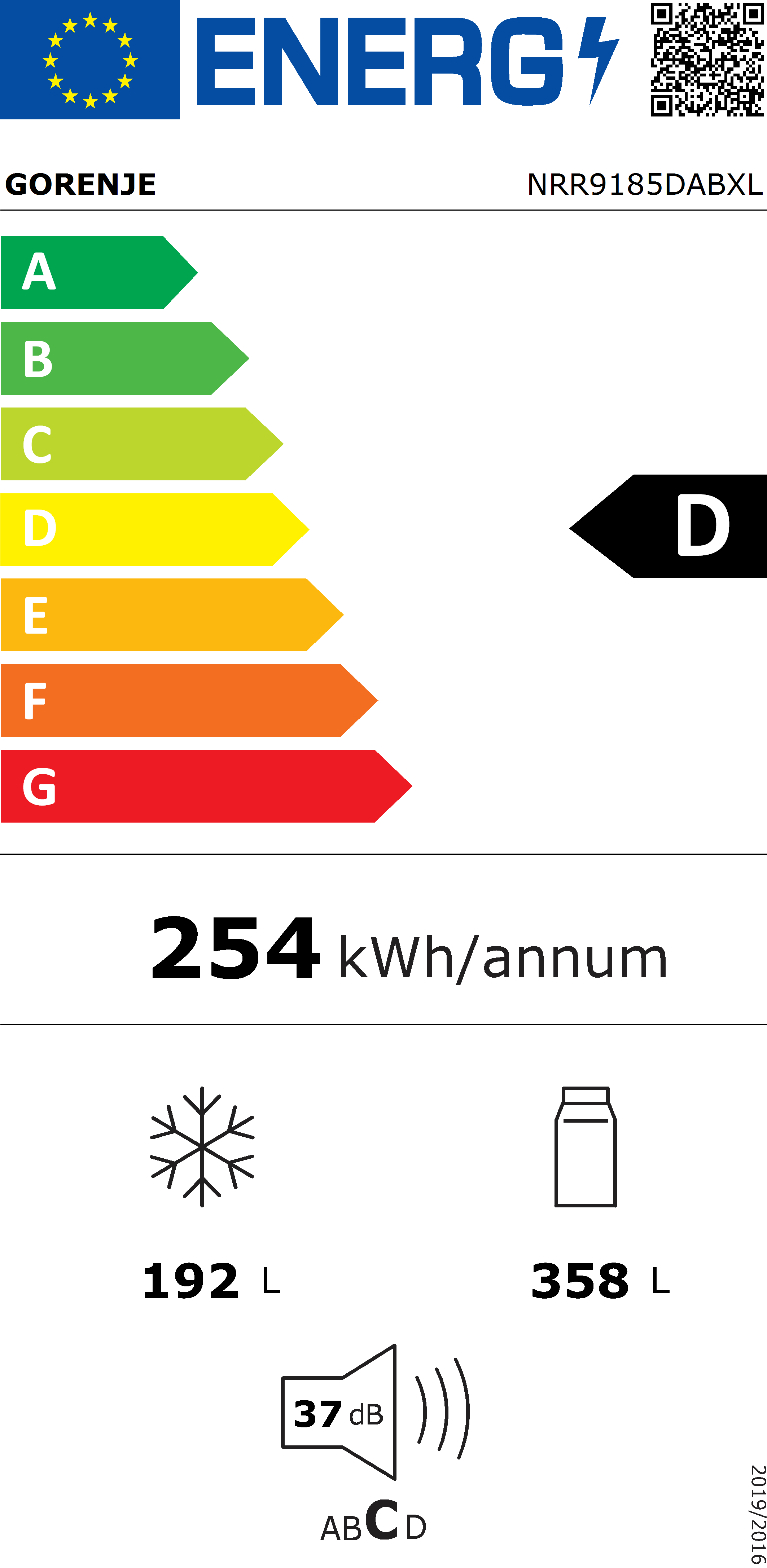 Energetski razred: D Energetski razred buke: C Boja aparata: crna Boja vrata: Black Steel Materijal vrata: kolaminirani čelik Otvaranje vrata: hladnjak desno / zamrzivač lijevo Broj vrata: 2 Vrsta baze: 4 kotačića/2 podesive noge naprijed Klimatski razredi: Subnormalna, Normalna, Subtropska, Tropska Ukupni volumen: 550 l Obujam rashladnog dijela: 358 l Obujam zamrzivačkog dijela: 192 l Kapacitet zamrzavanja u 24 sata: 11 kg Vrijeme čuvanja u slučaju nestanka el.energije: 10 h Procijenjena godišnja potrošnja električne energije: 253.6 kWh LED zaslon Elektronsko upravljanje SensoTech Indikator za otvorena vrata Namjestiva temperatura u zamrzivaču Odleđivanje rashladnog dijela: automatsko Odleđivanje zamrzvačkog dijela: automatsko ConvertActive konvertira zamrzivač u ZeroZone Memoriranje u slučaju nestanka struje FastFreeze sklopka za brzo zamrzavanje NoFrost Plus MultiFlow hlađenje u hladnjaku Štedljivi program EcoMode LED osvjetljenje na stropu Razina buke (max.): 37 dB(A) Broj kompresora: 1 inverterski kompresor Rashladna tekućina: R600a Polaganje aparata: dopušteno Dinamički kondenzator Broj neovisnih rashladnih sustava: 1 Širina proizvoda: 915 mm Visina proizvoda: 1786 mm Dubina proizvoda: 670 mm Neto težina proizvoda: 85 kg