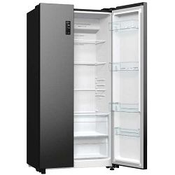 Samostojeći Advanced Line Energetski razred: E Energetski razred buke: C Boja aparata: crna Boja vrata: Black Steel Hladnjak desno / zamrzivač lijevo Broj vrata: 2 4 kotačića/2 podesive noge naprijed Ukupni volumen: 550 l Obujam rashladnog dijela: 358 l Obujam zamrzivačkog dijela: 192 l Kapacitet zamrzavanja u 24 sata: 11 kg Vrijeme čuvanja u slučaju nestanka el.energije: 8 h Procijenjena godišnja potrošnja električne energije: 317.55 kWh LED zaslon Elektronsko upravljanje SensoTech SensoTech sklopka Odleđivanje rashladnog dijela: automatsko Odleđivanje zamrzvačkog dijela: automatsko ConvertActive konvertira zamrzivač u ZeroZone Memoriranje u slučaju nestanka struje FastFreeze sklopka za brzo zamrzavanje NoFrost Plus MultiFlow hlađenje u hladnjaku Štedljivi program EcoMode LED osvjetljenje na stropu Broj staklenih polica u rashladnom dijelu: 4 kom Posudica za jaja: 2/12 Razina buke (max.): 38 dB(A) Broj kompresora: 1 inverterski kompresor Rashladna tekućina: R600a Polaganje aparata: dopušteno Bočni kondenzator Broj neovisnih rashladnih sustava: 1 Širina proizvoda: 915 mm Visina proizvoda: 1786 mm Dubina proizvoda: 670 mm Neto težina proizvoda: 85 kg
