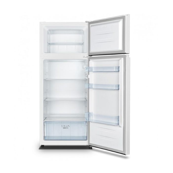 Gorenje RF4142PW4 kombinirani hladnjak Organiziranje vašeg hladnjaka jednostavno je i učinkovito, jer zahvaljujući LED rasvjeti, imate jasan pogled na unutrašnjost. Životni vijek LED rasvjete je značajno duži od običnih žarulja, zbog čega je i potrošnja energije manja. U unutrašnjosti hladnjaka nalazi se praktičan držač za jaja, koji se lako čisti. Zahvaljujući svom dizajnu, CrispZone+ ladica pomoći će hrani da sačuva hranjive tvari i hrskavost i produži svježinu. Posebno je pogodan za skladištenje voća i povrća. Kombinirani hladnjak spada u energetsku klasu E i ima izvrsnu toplinsku izolaciju, jer se može pohvaliti dobrim brtvljenjem vrata, vrhunskim komponentama rashladnog sustava i elektronskom regulacijom. Potrošnja energije je stoga značajno smanjena. OSNOVNI PODACI Vrsta uređaja :kombinirani hladnjak Vrsta konstrukcije: samostojeći Razred energetske učinkovitosti:E Razred emisije buke :C Boja :bijela Materijal vrata :lakirana površina Otvaranje vrata :mogućnost promjene smjera otvaranja vrata Broj vrata :2 Klimatski razredi : /N/ST Podkonstrukcija :2, kotačići, 2 noge UČINKOVITOST Ukupni volumen :206 l Volumen rashladnog dijela :165 l Volumen zamrzivača :41 l Volumen zamrzavanja :2 kg / 24 h Razdoblje skladištenja u slučaju nestanka struje: 12 sati Godišnja potrošnja energije: 176 kWh KONTROLA Kontrola :mehanički Indikator za otvorena vrata: ne Podesiva temperatura :da Način odmrzavanja odjeljka za hlađenje :automatski OPREMA ZA HLADNJAK Polica za boce u vratima hladnjaka : 1 polica za boce bez držača za boce Police u vratima hladnjaka :2 Unutarnje svjetlo :LED Broj podesivih polica u hladnjaku :3 Staklene police u hladnjaku :3 Višenamjenske police :da Stalak za jaja :da TEHNIČKI PARAMETRI Razina buke :40 dB(A) Broj kompresora :1 Vrsta rashladnog sredstva :R600A Broj neovisnih rashladnih sustava :1 Dimenzije (V x Š x D) :143,6 × 55 × 54,2 cm Dimenzije s pakiranjem (V x Š x D) :148,5 × 58 × 56,7 cm Masa :41 kg Masa s pakiranjem :44,5 kg Električni priključak :220 – 240 V Frekvencija :50 Hz Priključna snaga :75 W