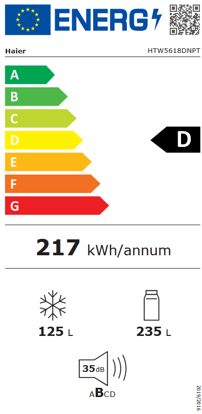 Zbroj zapremina odjeljaka za zamrzavanje (dm3 ili L): 125