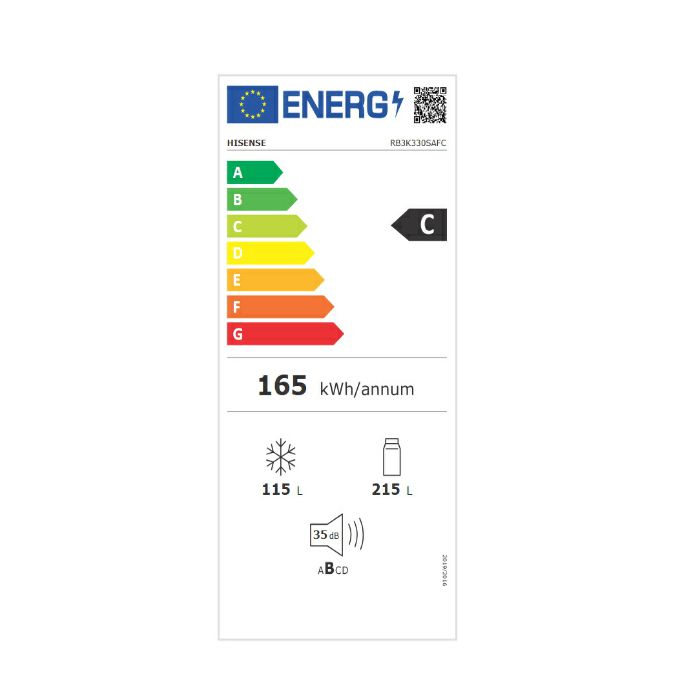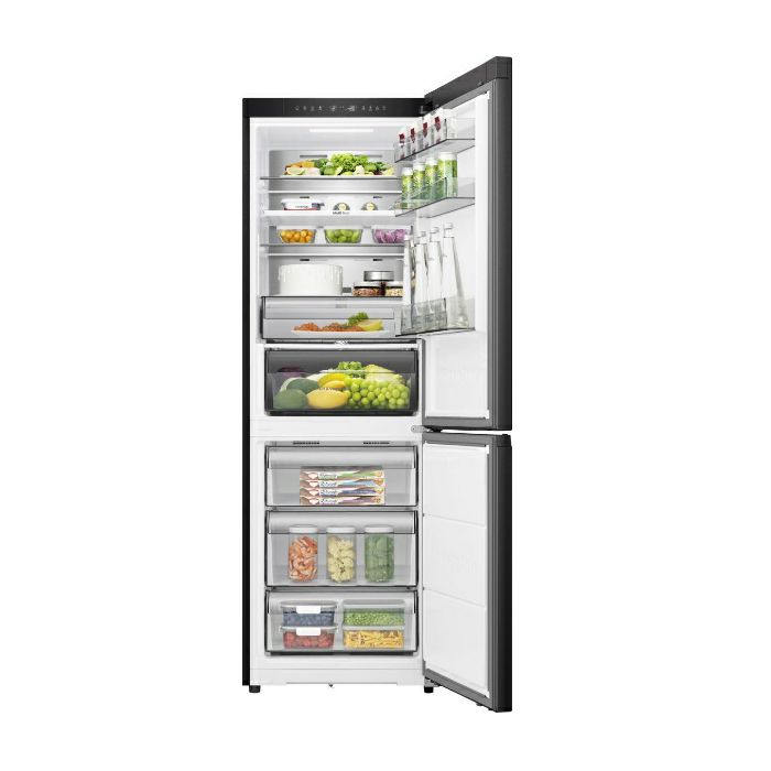 Tip konstrukcije Samostojeća Energetski razred C Energetski razred buke B Lokacija zamrzivačkog dijela Ispod Boja aparata Crna Boja vrata Crna Materijal vrata Lakirana Otvaranje vrata Desno promjenjivo Broj vrata 2 Vrsta baze 2 kotačića/2 podesive noge Broj zvjezdica Svježa hrana, Hlađenje, 4 zvjezdice Klimatski razredi Subnormalna, Normalna, Subtropska, Tropska Ukupni volumen 330 l Obujam rashladnog dijela 190 l Zapremnina rashladnog pretinca 25 l Obujam zamrzivačkog dijela 115 l Kapacitet zamrzavanja u 24 sata 10 kg Vrijeme čuvanja u slučaju nestanka el.energije 12 h Procijenjena godišnja potrošnja električne energije 165 kWh Moguće upravljanje putem Wi-Fi mreže Da, integrirano Tip zaslona LED zaslon Vrsta upravljanja Elektronsko iza vrata Indikator temperature Digitalni pokazivač temperature u rashladnom i zamrzivačkom dijelu Previsoka tempratura u zamrzivačkom dijelu Zvučni alarm Namjestiva temperatura u zamrzivaču Da Odleđivanje rashladnog dijela Automatsko Odleđivanje zamrzvačkog dijela Automatsko Bravica na vratima Ne Regulator vlažnosti Moisture Fresh Crisper and Fresh Crisper No Frost Total No frost Kruženje zraka Multi Air Flow Eko način rada Ne Dispenzer za hladnu vodu Ne Nosač boca Stalak za vino Police na vratima hladnjaka 3 police u vratima Osvjetljenje unutrašnjosti rashladnog dijela LED osvjetljenje na stropu Automatski ledomat Ne Broj premjestivih polica u odjeljku hladnjaka 2 kom Broj staklenih polica u rashladnom dijelu 4 kom Posudice za led Ne Prostor za zamrzavanje 3 ladice Osvjetljenje zamrzivačkog dijela Nema osvjetljenja Razina buke (max.) 35 dB(A) Broj kompresora 1 inverterski kompresor Priključak za vodu Ne Rashladna tekućina R600a Broj neovisnih rashladnih sustava 1 Širina proizvoda 595 mm Visina proizvoda 1856 mm Dubina proizvoda 600 mm Bruto težina proizvoda 79 kg Neto težina proizvoda 73 kg Širina zapakiranog proizvoda 645 mm Visina zapakiranog proizvoda 1988 mm Dubina zapakiranog proizvoda 650 mm Priključni napon 220-240 V Frekvencija 50 Hz