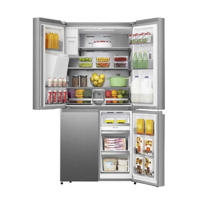 Hisense RQ760N4SASE Kombinirani multidoor hladnjak Energetska klasa: E Boja Inox look Total NoFrost WiFi SuperCool Inverter kompresor Ledomat i dozator vode CrispZonew s Humidity control FreshZone SuperCool MultiFlow LED zaslon Polica za boce LED osvjetljenje Zvučni signal za otovrena vrata 2 posude za povrće Ukupna zapremina: 493 l Hladnjak: 352 l Zamrzivač: 188 l Kapacitet zamrzavanja: 10 kg / 24 h Potrošnja el. energije: 352 kWh/godišnje Razina buke: 37 dB(A) Dimenzije: ŠDV 914 x 725 x 1785 mm