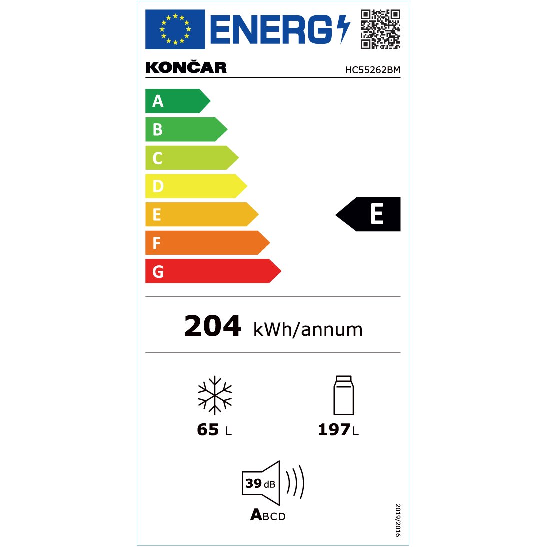 Boja: bijela Ukupni korisni volumen: 262 l Visina/ Širina/ Dubina: 177,3×54,7×56,8 cm Odleđivanje prostora za hlađenje: ručno Odleđivanje prostora za zaleđivanje: ručno Reguliranje temperature Osvjetljenje unutarnjeg prostora Staklene police u hladnjaku: 4 Staklene police u prostoru za zaleđivanje: 1 Ladice u ledenici: 2 Posuda za povrće: 1 Posuda za kocke leda Nogice za niveliranje Promjenjiv smjer otvaranja vrata Rashladno sredstvo: R600a Količina rashladnog sredstva: 0,081 kg Kapacitet zaleđivanja: 3 kg/24h Klimatska klasa: SN/N/ST Broj kompresora: 1 Razred energetske učinkovitosti: E Potrošnja energije kWh/god: 204 Neto smještajni obujam volumen odjeljka za svježe namirnice (5°C): 197 l Neto smještajni obujam volumen odjeljka za zaleđene namirnice: 65 l Broj zvjezdica: 4 Vrijeme porasta temperature: 10 h Razina buke: 39 dB(A) Masa aparata neto/bruto: 46,5/51,5 kg