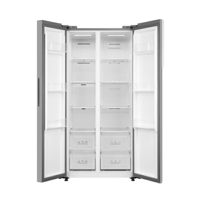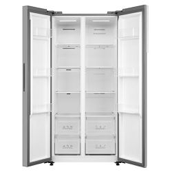 Boja: inox Ukupni korisni volumen: 460 l Visina/ Širina/ Dubina: 172x83x63 cm No Frost Odleđivanje prostora za hlađenje: automatsko Odleđivanje prostora za zaleđivanje: automatsko Reguliranje temperature: touch control Osvjetljenje unutarnjeg prostora: LED Staklene police u hladnjaku: 4 Staklene police u prostoru za zaleđivanje: 4 Ladice u ledenici: 2 Posuda za povrće: 2 Posuda za kocke leda Nogice za niveliranje Rashladno sredstvo: R600a Količina rashladnog sredstva: 0,090 kg Kapacitet zaleđivanja: 12 kg/24h Klimatska klasa: SN/N/ST Broj kompresora: 1 Razred energetske učinkovitosti: E Potrošnja energije kWh/god: 295 Neto smještajni obujam volumen odjeljka za svježe namirnice (5°C): 271 l Neto smještajni obujam volumen odjeljka za zaleđene namirnice: 189 l Broj zvjezdica: 4 Vrijeme porasta temperature: 9 h Razina buke: 41 dB Potrošnja energije kWh/24h: 1,11 Masa aparata neto/bruto: 77/86 kg