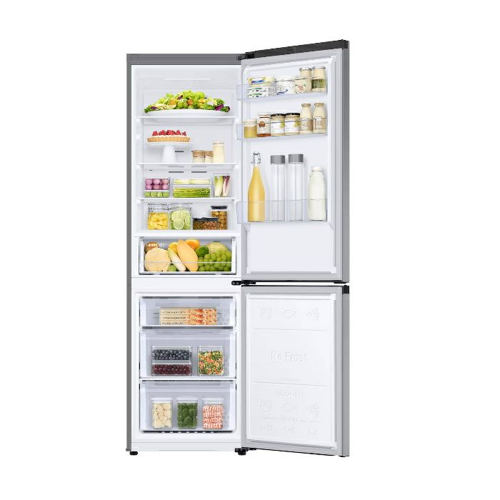 Bruto ukupno (litre) 344 l Neto širina (mm) 595 mm Neto visina kućišta sa zglobnim postoljem (mm) 1853 mm Neto težina 63 kg Vrsta hlađenja Mono Cooling tehnologija Razred energetske učinkovitosti D Kapacitet Bruto zamrzivač (litre) 114 l Bruto hladnjak (litre) 230 l Fizičke specifikacije Neto visina kućišta bez zglobnog postolja (mm) 1853 mm Neto dubina bez ručke na vratima (mm) 658 mm Neto dubina bez vrata (mm) 595 mm Širina pakiranja (mm) 637 mm Visina pakiranja (mm) 1935 mm Dubina pakiranja (mm) 740 mm Težina pakiranja (kg) 66 kg 20/40/40H (kontejner) 27/54/72/84 Značajke hlađenja Funkcija bez zamrzavanja Da Značajke hladnjaka Broj polica (ukupno) 4 EA Polica za vino Ne Broj pretinaca u vratima 3 EA Spremnik (plitica) za jaja Da Unutarnje LED svjetlo LED svjetlo s vrha Materijal polica Kaljeno staklo Broj ladica za voće i povrće 1 EA Funkcija snažnog hlađenja Da Značajke zamrzivača Broj ladica 3 EA Funkcija snažnog zamrzavanja Da Ladica za led Da Opće značajke Vrata s promjenjivim smjerom otvaranja Da Alarm za vrata Da Radna tvar R600a Autonomija u satima (porast temperature) 9 h Vanjske značajke Tip zaslona Unutarnji Ručka na vratima Uvučena Boja Grafitna Performanse Potrošnja energije 204 kWh/year Razina buke 35 dBA Klimatski razred SN, N, ST, T Kapacitet zamrzavanja (kg/24 h) 8 kg/24hr Kategorija Vrsta hladnjaka BMF Smart Ugrađeni WiFi Da