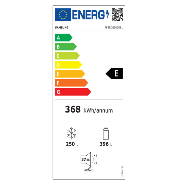 Vrsta hlađenja Trostruko hlađenje Neto visina kućišta sa zglobnim postoljem (mm) 1830 mm Neto dubina s ručkom na vratima (mm) 723 mm Neto težina 147 kg Neto širina (mm) 912 mm Pojedinosti o tehničkim podacima Donji lijevi odjeljak Polica 2 EA Kutija 1 EA Door Pocket 3 EA Ledomat Dvostruki automatski ledomat LED Interior Light Da Donji desni odjeljak Kutija 1 EA FlexZone Da Polica 2 EA Door Pocket 3 EA Kapacitet Bruto zamrzivač (litre) 250 l Bruto hladnjak (litre) 396 l Bruto ukupno (litre) 646 l Značajke hlađenja Vrsta hlađenja Trostruko hlađenje Vanjske značajke Postaja za napitke Da Boja Crna DOI Dozator s filtrom za vodu Da Tip zaslona Unutarnji (jednostavni UX LCD) Ručka na vratima Uvučena Vrsta dozatora Dozator vode (vodovod) + automatsko punjenje Opće značajke Alarm za vrata Da Poklopac hlađenja Metalni kanal za hlađenje Performanse Klimatski razred SN, N, ST, T Kapacitet zamrzavanja (kg/24 h) 12 kg/24hr Potrošnja energije 368 kWh/year Razred energetske učinkovitosti E Razina buke 37 dBA Fizičke specifikacije Neto visina kućišta sa zglobnim postoljem (mm) 1830 mm Neto visina kućišta bez zglobnog postolja (mm) 1797 mm Neto dubina s ručkom na vratima (mm) 723 mm Neto dubina bez ručke na vratima (mm) 723 mm Neto dubina bez vrata (mm) 610 mm Neto težina 147 kg Neto širina (mm) 912 mm Dimenzije pakiranja (Š×V×D) (mm) 972 x1970x776 mm Težina pakiranja (kg) 156 kg Značajke hladnjaka Unutarnje LED svjetlo Široko LED svjetl s vrha Broj pretinaca u vratima 6 EA Broj polica (ukupno) 4 EA Broj ladica za voće i povrće 2 EA Vrsta osvježivača UV uklanjanje neugodnih mirisa Skladišni prostor za velike boce u vratima 1 EA Kategorija Dubina Dubina ormarića Povezivost aplikacija Podrška za SmartThings aplikaciju Da