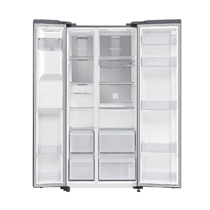 Ušteda energije do 10 % Tih i stabilan rad Bolja organizacija pohranjenih namirnica SAMSUNG hladnjak SBS RS65DG54M3SLEO (E) dispenzer, Refined Inox Energetska učinkovitost koja štedi svaki dan Pametna tehnologija unutar hladnjaka omogućuje uštedu energije do 10 %, zahvaljujući načinu rada AI Energy Mode. Ova značajka koristi algoritme koji analiziraju Vaše navike i okolinske uvjete te prilagođava rad kompresora i cikluse odleđivanja. Kada aplikacija SmartThings procijeni da bi račun za struju mogao premašiti unaprijed zadani cilj, aktivira način rada za uštedu. Sve to omogućuje energetski učinkovitije hlađenje bez kompromisa u performansama.
