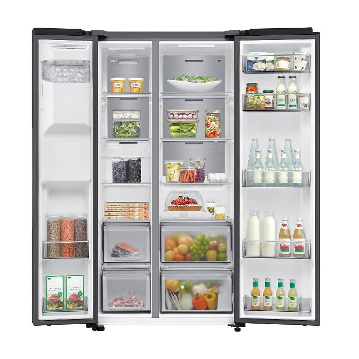 SAMSUNG hladnjak SBS RS70F64KEFEO (E) AI Black DOI Dugotrajna svježina uz manju potrošnju energije Ovaj hladnjak koristi napredni AI Energy način rada koji omogućuje uštedu energije do 10 %*. Pomoću SmartThings aplikacije automatski analizira obrasce korištenja i okolišne uvjete te optimizira rad kompresora i ciklusa odmrzavanja. Time smanjuje potrošnju bez ugrožavanja performansi.