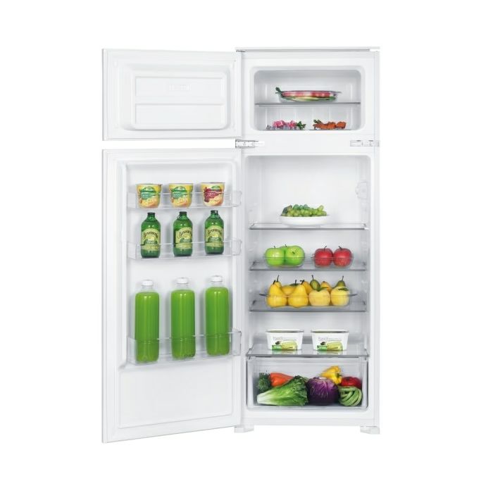 Vrsta uređaja: 2 vrata Tehnologija hlađenja: statički Rasvjeta: LED Upravljanje: mehaničko Boja: bijela Materijal polica: staklo Šarka na vratima: desno Promjena smjera otvaranja vrata Ukupan broj polica na vratima: 3 Broj ladica za voće i povrće: 1 Klimatski razred: N, ST Razred energetske učinkovitosti: E Godišnja potrošnja energije (kWh/god): 175 Razred emisije buke koja se prenosi zrakom: C Emisija buke koja se prenosi zrakom (dBA): 39 Zbroj zapremina odjeljaka za hlađenje (dm3 ili L): 169 Zbroj zapremina odjeljaka za zamrzavanje (dm3 ili L): 36 Ukupan zbroj zapremina svih odjeljaka (dm3 ili L): 205 Visina (mm): 1450 Širina (mm): 540 Dubina (mm): 540 Neto težina (kg): 40