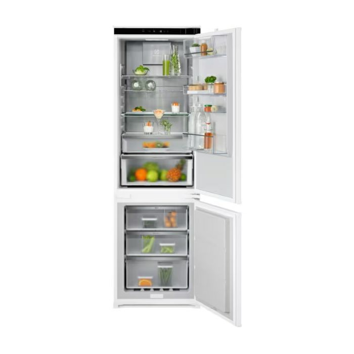 Potpuno ugradbeni hladnjak, klizna montažna vrata Neto zapremnina odjeljka za zamrzavanje, l: 61 Neto zapremnina hladnjaka, l: 192 Automatsko odmrzavanje zamrzivača Automatsko odmrzavanje rashladnog pretinca Funkcija brzog zamrzavanja brzo osigurava željenu temperaturu hlađenja Funkcija brzog zamrzavanja brzo zamrzava namirnice te čuva okus i vitamine Zvučni i svjetlosni alarm visoke temperature Vizualni i zvučni signal upozorenja otvorenih vrata Odvojene kontrole odjeljka zamrzivača i hladnjaka Osvjetljenje hladnjaka: 1, Luna Police zamrzivača: 2 Posebna polica za boce Položaj šarki na vratima: desno, mogućnost promjene smjera otvaranja vrata Funkcija 'Brzo zamrzavanje' s automatskim vraćanjem na normalnu postavku Funkcija 'Shopping' brzo osigurava željenu temperaturu hlađenja Elektronske kontrole na dodir sa digitalnim pokazivačem Energetska klasa: C Dimenzije V׊×D (mm): 1772 x 546 x 549 Dimenzije za ugradnju VxŠxD (mm): 1780 x 560 x 550