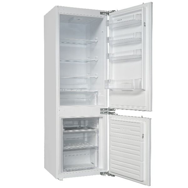 Končar UHC1A54251DVN Ugradbeni kombinirani hladnjak Ukupni korisni volumen: 248 l Visina/ Širina/ Dubina: 177/54/54,5 cm Odleđivanje prostora za hlađenje: automatsko Odleđivanje prostora za zaleđivanje: ručno Reguliranje temperature Osvjetljenje unutarnjeg prostora Staklene police u hladnjaku: 4 Žičane police u prostoru za zaleđivanje: 1 Ladice u ledenici: 2+1 spremište Posuda za povrće Posuda za kocke leda Lopatica za led Promjenjiv smjer otvaranja vrata Rashladno sredstvo: R600a Količina rashladnog sredstva: 0,068 kg Kapacitet zaleđivanja: 4 kg/24h Klimatska klasa: ST/N Broj kompresora: 1 Razred energetske učinkovitosti: F Potrošnja energije kWh/god: 269 Neto smještajni obujam volumen odjeljka za svježe namirnice (5°C): 181 l Neto smještajni obujam volumen odjeljka za zaleđene namirnice: 68 l Broj zvjezdica: 4 Vrijeme porasta temperature: 18 h Razina buke: 38 dB Potrošnja energije kWh/24h: 0,736 Dimenzije zapakiranog proizvoda: 183,4/58,4/57,7 cm Masa aparata neto/bruto: 60/64 kg