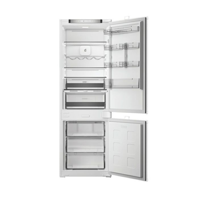 Ukupni volumen svih odjeljaka za smrzavanje: 76 Vrsta: Kombinirani hladnjak Broj temperaturnih područja: 2 Frost free: Hladnjak i zamrzivač Ukupan volumen proizvoda: 270 Broj polica u zamrzivaču: 3 Odjeljak za hladnjak sa sustavom odvodnje vode: Da Police za boce Vrsta instalacije: Ugradbeni Proces odmrzavanja u zamrzivaču: Automatski jednoručni gumb Broj polica u odjeljku hladnjaka: 3 Signal upozorenja / kvar: Zvučni Sistem instalacije ukrasne fronte: Klizači Dužina električnog kabela (cm): 2.15 Indikator otvorenih vrata zamrzivača Kapacitet zamrzavanja (odjeljak s 4 zvjezdice): 3.5 Boja: Zinc Metal EAN kod: 8003437068867 Proces odmrzavanja u hladnjaku: Automatski jednoručni gumb Ukupni volumen svih odjeljaka za hlađenje: 194 Vrsta upravljačkih funkcija: Elektronička
