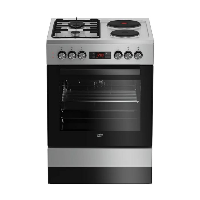Glavne značajke Visina: 85 cm Širina: 60 cm Dubina: 60 cm Broj pećnica: 1 Vrsta pećnice: S ventilatorom Broj funkcija: 6 Vrsta zaslona: LED zaslon Razred energetske učinkovitosti pećnice: A Čišćenje parom: SteamShine® Vrsta otvaranja vrata: Otvaranje odozdo Boja: Srebrna Vrsta električne ploče za kuhanje: Dvostruko napajanje Konfiguracija plamenika: 2 plinska plamenika i 2 električna grijača Volumen pećnice: 66 L Funkcije pećnice Broj funkcija: 6 S ventilatorom Konvencionalno kuhanje Električni roštilj: Mali ventilatorski roštilj Donji grijač Značajke integrirane ploče za kuhanje Vrsta ploče za kuhanje Dvostruko napajanje Konfiguracija plamenika 2 plamenika i 2 ploče za kuhanje Učinkoviti plamenici Dizajn plamena: Metalni Vrsta paljenja: Integrirano paljenje Sigurnosni uređaj za plamenike Prednja lijeva zona: 1 kW Stražnja lijeva zona: 2,9 kW Prednja desna zona: O145 mm - 1000 W Stražnja desna zona: O180 mm - 2000 W Nosač posude: Emajl Broj plamenika: 2 Broj električnih zona: 2 Standardni pribor Broj standardnih posuda: 1 Broj dubokih posuda: 1 Broj standardnih rešetki: 1 Čišćenje Čišćenje parom: SteamShine® Tehnologije Vrsta roštilja: Električni roštilj Učinkoviti plamenici: Dizajn Vrsta osvjetljenja: Halogeno svjetlo Vrsta zaslona: LED zaslon Broj pećnica: 1 Broj razina polica: 5 razina Broj razina polica u gornjoj pećnici: 2 razine Boja pećnice: Crni emajl Vrsta otvaranja vrata: Otvaranje prema dolje Boja: Srebrna Vrsta donjeg odjeljka: Metalna ladica za pohranu Dizajn poklopca: Metalni Sigurnost Zaštitna brava za djecu Performanse i potrošnja Volumen pećnice: 66 l Razred energetske učinkovitosti pećnice: A Izvor topline pećnice: Električni Vrsta instaliranog plina: Prirodni plin Ukupna snaga plina: 3900 W Ukupna električna snaga: 5400 W Napon: 220 - 240 V Frekvencija: 50 Hz Dimenzije i težina Visina: 85 cm Širina: 60 cm Dubina: 60 cm Težina: 48,07 kg Visina pakiranja: 97 cm Širina pakiranja: 66 cm Dubina pakiranja: 70 cm Težina pakiranog uređaja: 51,6 kg