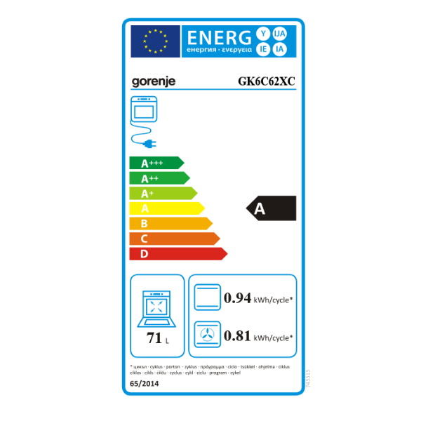 Unutrašnjost spremnika SilverMatte Materijal poklopca Without lid Pant vrata GentleClose meko zatvaranje vrata HomeMade oblik Da Iskoristivi obujam pećnice 71 l Vrsta pećnice Multifunkcionalna Površina najveće posude za pečenje 1316 cm2 Timer funkcija IconLed Oblik gumba Ergonomski gumbi Paljenje plinskih plamenika Električno jednoručno paljenje plinskih plamenika Zona za kuhanje sprijeda lijevo Mali plamenik O lijevo sprijeda (mm) 54 Snaga zona za kuhanje lijevo sprijeda 1000 W Zona za kuhanje sprijeda desno Veliki plamenik O desno sprijeda (mm) 99 Snaga zona za kuhanje desno sprijeda 3000 W Zona za kuhanje straga lijevo Brzogrijuća ploča O lijevo straga (mm) 180 Snaga zone za kuhanje lijevo straga 2000 W Zona za kuhanje straga desno Srednji plinski plamenik O desno straga (mm) 74 Snaga zone za kuhanje desno straga 1900 W Izvedba nosivih rešetki Lijevano željezo Način zagrijavanja Brzo predzagrijavanje Način zagrijavanja Konvencionalno s ventilatorom Način zagrijavanja Veliki infracrveni grijač s ventilatorom Način zagrijavanja AirFry Način zagrijavanja Cirkularni grijač Način zagrijavanja Donji i gornji grijač Način zagrijavanja Veliki infracrveni grijač Način zagrijavanja Pizza funkcija Način zagrijavanja Pečenje zamrznutih namirnica Način zagrijavanja Odleđivanje Način zagrijavanja AquaClean Osvjetljenje pećnice Iza Preklopni gornji grijač za olakšano čišćenje Ne MultiAir Da Istovremeno pečenje na više razina Da Vodilice posuda za pečenje Žičane vodilice Komplet ražnja Ne Posude za pečenje 1 duboka emajlirana posuda za pečenje, 1 plitka emajlirana posuda za pečenje Rešetka pećnice 1 kom Sonda za meso Ne Križ za nosivu rešetku Ne Filter za masnoću Ne Zatvorene mlaznice za plin G20/20 prirodni plin Vrsta plina G30/30 za propan butan Vrata Dvostruka vrata pećnice s 1-strukom temperaturnom refleksijom Temperatura vrata pećnice CompactDoor Blokada vratiju Ne Ventilator za hlađenje Dinamičko hlađenje pećnice - DC Signalizacija preostale topline Ne Katalitičko Ne Energy consumption conventional oven 0.941 kWh Potrošnja energije (ventilatorska) 0.81 kWh Potrošnja el. energije u StandBy režimu 0.5 W Priključna snaga 5.3 kW Širina proizvoda 600 mm Visina proizvoda 850 mm Dubina proizvoda 600 mm Širina zapakiranog proizvoda 676 mm Visina zapakiranog proizvoda 952 mm Dubina zapakiranog proizvoda 718 mm Bruto težina proizvoda 49 kg Neto težina proizvoda 45.6 kg Frekvencija 50 Hz, 60 Hz Priključni napon 220-240 V Vrsta priključka AC 230V/400V