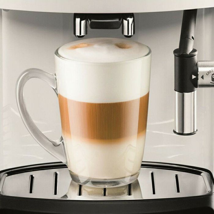 Doživite esenciju espressa od zrna do šalice uz aparat KRUPS EA816170 Espresseria. Korištenje ovog potpuno automatskog aparata za espresso je potpuno jednostavno, jer ima jednostavan i razumljiv LCD zaslon za potpunu kontrolu nad napitcima od kave. Kontrola mljevenja omogućuje savršenu konzistenciju za željena pića, u rasponu od punog espressa do izvrsne duge kave. Parna mlaznica završni je detalj za širok izbor pića, jer možete uživati u iznimno pjenastom cappuccinu kod kuće. Jednostavno uživajte u savršenom espressu.