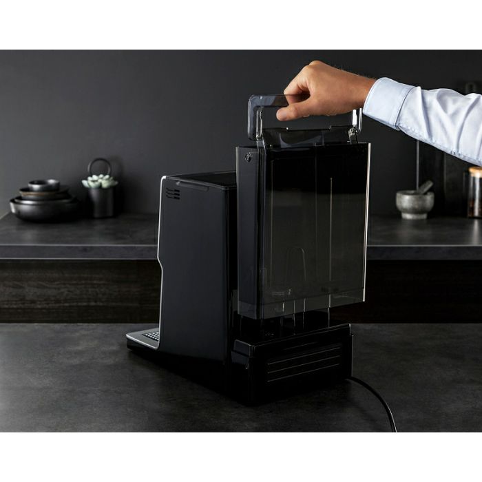 Lako se koristi izravno u šalici za mlijeko, čime se izbjegava prskanje mlijeka. Krups Milk Advanced tehnologija također čini čišćenje lakim. Samo postavite cijev ispod izlaza aparata za kavu i automatsko čišćenje mlijeka počinje. Ovaj model uključuje okruglu praktičnu posudu za mlijeko od 600 ml koja se lako može pohraniti u hladnjak.
