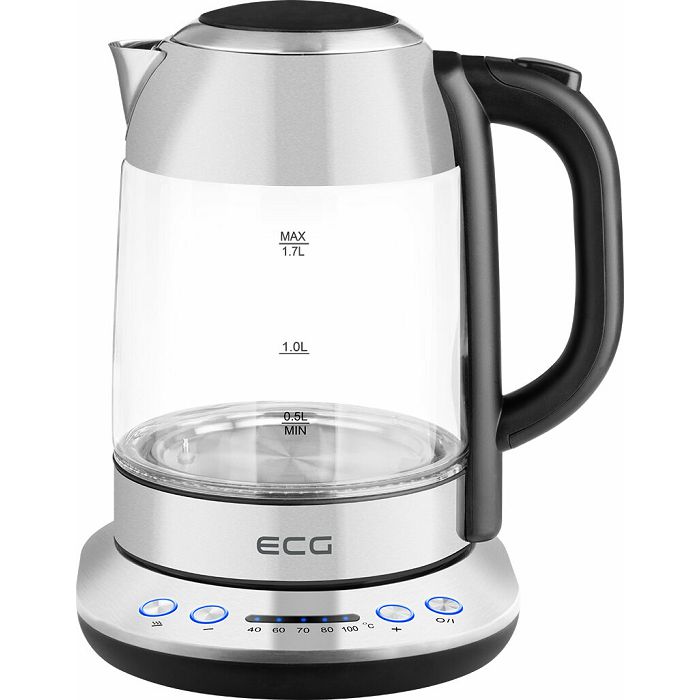 Elegantan dizajn od nehrđajućeg čelika u kombinaciji s kaljenim staklom – kaljeno staklo u kombinaciji s nehrđajućim čelikom SUS 304 Varijabilno podešavanje temperature (40-60-70-80-100 °C) 5 načina podešavanja temperature za različite vrste čaja, drugih toplih napitaka ili dječje hrane Funkcija održavanja temperature vode Zapremina 1,7l Baza s upravljačkom pločom Markirani središnji konektor STRIX s doživotnom funkcijom Skriveni grijač Način automatskog isključivanja: kada je uključeno bez vode / kada je dosegnuta točka vrenja / kada je kuhalo uklonjeno s postolja Svjetlosna signalizacija, zvučno upozorenje Uklonjivi i perivi filtar protiv kamenca Okretna baza za 360° s namatanjem kabela Sigurno i lako otvaranje gumbom Nazivni napon: 220–240 V ~ 50–60 Hz Nazivna snaga: 1850–2200 W