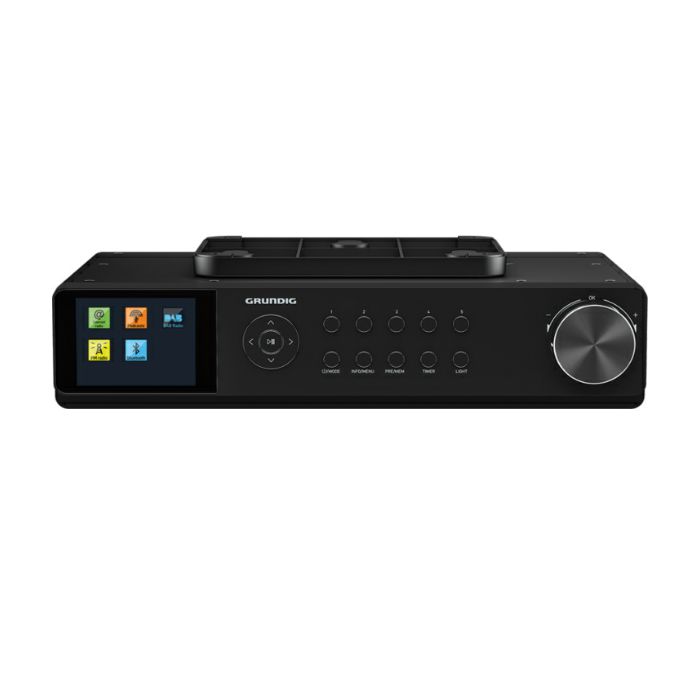 Grundig DKR 3000 BT DAB+ Kuhinjski radio Internet radio (WiFi) DAB + i FM tuner s 30 memorijskih mjesta programa Bluetooth strujanje glazbe (V4.2) Ukupna izlazna snaga: 2 x 7 vata s 2 pasivna speakera 2,8" TFT zaslon u boji Integrirana LED rasvjeta Dimenzije: 29,6 x 7,9 x 19,0 cm Boja: crna