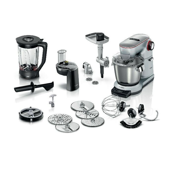 Bosch MUM9BX5S61 Kuhinjski robot, OptiMUM, 1500 W Snažan i izdržljiv motor od 1500 W i za zahtjevna tijesta 3D PlanetaryMixing: brzo i savršeno miješanje svih sastojaka; zahvaljujući poboljšanom planetarnom sistemu miješanja s jedinstvenim gibanjem u tri dimenzije istovremeno SensorControl Plus: uvijek savršeni rezultati za dizano tijesto, tučeno vrhnje i bjelanjke. Jednostavno pritisnite tipku i aparat će se zaustaviti kada postigne savršeni rezultat Smart Dough Sensor: konstantna brzina miješanja cijelo vrijeme, i kod pripremanja težeg tijesta i većih količina, jamči brze i savršene rezultate Vrlo raznolik dodatni pribor omogućuje vam kreativnost u kuhinji Prilagodite kuhinjski robot svojim potrebama zahvaljujući velikom asortimanu opcionalnog dodatnog pribora Ugrađena vaga: sastojci se mogu izvagati izravno u posudi radi uštede vremena tijekom pripreme SensorControl Plus: pronađite vrijeme za nešto drugo umjesto nadgledanja aparata Ugrađeni mjerač vremena: unaprijed postavite vrijeme rada za ponovljene savršene rezultate – uređaj se zaustavlja automatski Smart tool detection - pametna detekcija alata: koji god alat upotrebljavali, OptiMUM će postići maksimalnu brzinu za svaki alat Vrlo velika posuda od brušena nehrđajućeg čelika zapremnine od 5,5 l s dvjema udobnim ručkama za do 3,5 kg smjese za kolač ili 1,5 kg brašna sa sastojcima za dizano tijesto 7 stupnja uključenja odnosno radne brzine, trenutno uključenje EasyArmLift: jednostavno pomicanje višenamjenske ručke Easy storage: automatsko namatanje kabela za jednostavno i brzo spremanje Odličan dizajn: nagrađivani uređaj privlači poglede u vašoj kuhinji. Izdržljivo i čvrsto kućište od tlačno lijevanog aluminija Poklopci mehanizma izrađeni od brušenog nehrđajućeg čelika Visoka sigurnost radi zatvorenog pogonskog dijela Zaštita od ponovnog neželjenog uključenja Gumene nožice Absolute metlica za miješanje: savršeno miješanje omogućeno metlicom za miješanje koja savršeno pristaje obliku posude; miješanje svih sastojaka u homogenu smjesu Metalna metlica za stepanje: podesivo po visini, za savršenu obradu većih ili manjih količina, npr. bjelanjaka High Performance metlica za gnječenje: poseban oblik omogućuje kuki da "prereže" tijesto i opet ga umijesi zajedno. Rezultat je intenzivnije miješanje tijesta Uključen stakleni blender ThermoSafe debelih stjenki zapremnine 2,3 l (s hranom: 1,5 l) za jednostavno i sigurno miješanje vrućih juha i ledenih pića bez buke zahvaljujući posebnom obliku Država porijekla: Slovenija