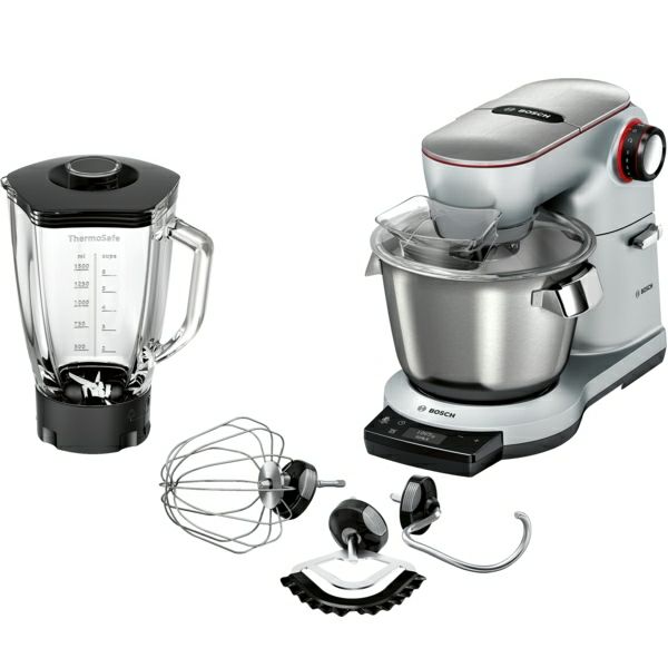 OptiMUM platinum silver Univerzalni kuhinjski aparat MUM9YX5S12 SensorControl Plus: uvijek savršeni rezultati za dizano tijesto, tučeno vrhnje i bjelanjke. Jednostavno pritisnite tipku i aparat će se zaustaviti kada postigne savršeni rezultat Snažan i izdržljiv motor od 1500 W i za zahtjevna tijesta 3D PlanetaryMixing: brzo i savršeno miješanje svih sastojaka; zahvaljujući poboljšanom planetarnom sistemu miješanja s jedinstvenim gibanjem u tri dimenzije istovremeno Smart Dough Sensor: konstantna brzina miješanja cijelo vrijeme, i kod pripremanja težeg tijesta i većih količina, jamči brze i savršene rezultate Vrlo raznolik dodatni pribor omogućuje vam kreativnost u kuhinji Prilagodite kuhinjski aparat svojim potrebama zahvaljujući velikom asortimanu opcionalnog dodatnog pribora Ugrađena vaga: sastojci se mogu izvagati izravno u posudi radi uštede vremena tijekom pripreme SensorControl Plus: pronađite vrijeme za nešto drugo umjesto nadgledanja aparata Ugrađeni mjerač vremena: unaprijed postavite vrijeme rada za ponovljene savršene rezultate – uređaj se zaustavlja automatski Smart tool detection - pametna detekcija alata: koji god alat upotrebljavali, OptiMUM će postići maksimalnu brzinu za svaki alat Vrlo velika posuda od brušena nehrđajućeg čelika zapremnine od 5,5 l s dvjema udobnim ručkama za do 3,5 kg smjese za kolač ili 1,5 kg brašna sa sastojcima za dizano tijesto 7 stupnja uključenja odnosno radne brzine, trenutno uključenje EasyArmLift: jednostavno pomicanje višenamjenske ručke Easy storage: automatsko namatanje kabela za jednostavno i brzo spremanje Izdržljivo i čvrsto kućište od tlačno lijevanog aluminija Poklopci mehanizma izrađeni od brušena nehrđajućeg čelika izgledaju vrlo kvalitetno, a takvi su i na dodir i osjet Visoka sigurnost radi zatvorenog pogonskog dijela Zaštita od ponovnog neželjenog uključenja Gumene nožice Svaki mehanizam i dodatni pribor označeni su bojom Absolute metlica za miješanje: savršeno miješanje omogućeno metlicom za miješanje koja savršeno pristaje obliku posude; miješanje svih sastojaka u homogenu smjesu Metalna metlica za stepanje: podesivo po visini, za savršenu obradu većih ili manjih količina, npr. bjelanjaka High Performance metlica za gnječenje: poseban oblik omogućuje kuki da "prereže" tijesto i opet ga umijesi zajedno. Rezultat je intenzivnije miješanje tijesta Uključen stakleni blender ThermoSafe debelih stjenki zapremnine 2,3 l (s hranom: 1,5 l) za jednostavno i sigurno miješanje vrućih juha i ledenih pića bez buke zahvaljujući posebnom obliku