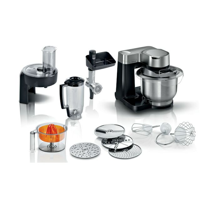 Snažan Bosch motor od 900 vata: idealan za brze rezultate pečenja i kuhanja, jednostavnu obradu čak i gustog tijesta. Savršeni rezultati zahvaljujući sustavu 3D PlanetaryMixing koji osigurava optimalno miješanje svih sastojaka. 7 postavki brzine: jednostavna i brza priprema sa 7 postavki brzine te funkcijom pulsiranja za bitnije zadatke. Postavka automatskog stanja pripravnosti nastavaka za jednostavno punjenje zdjele Slastičarski set: metlica za miješanje, metlica za tučenje i kuka za gnječenje za savršeno pečenje.