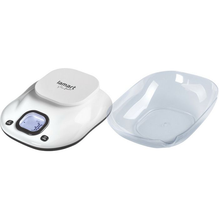 Kuhinjska vaga s LCD zaslonom i zdjelom BANGLamart LT7073Vaga sa senzorima za upravljanje dodirom za precizno vaganje s velikim LCD zaslonom i praktičnom uklonjivom zdjelom od 1000 ml. Plastična jednolična površina za jednostavno i higijensko održavanje.Funkcija postupnog vaganja i nuliranja težine spremnika (TARE).Kapacitet do 5 kg (točnost 1 g).Slaba baterija i indikacija preopterećenja.Izbor jedinica (g/ml/lb/fl:oz).Baterija: 2× 1,5V AAA baterija, nije uključenaPravokutnik oblik Veličina 21 × 22,5 × 10,1 cmMaterijal: plastika