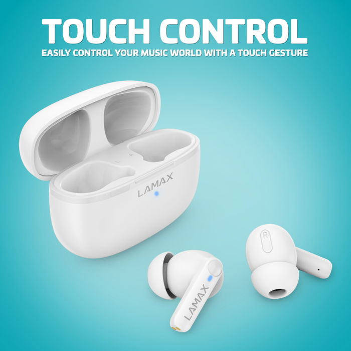LAMAX isječci1 Igraj bijelo Zvuk i stil bez premca Život je prekratak da biste čekali da vam se slušalice sinkroniziraju. Sa munjevito brzim Bluetooth 5.3 sučeljem u LAMAX Clips1 bežičnim slušalicama, čekanje je stvar prošlosti. Opremljene impresivnim trajanjem baterije od 7 sati, ove će slušalice izdržati vaš najbrži tempo. Bilo da obavljate poslove ili se bavite sportom, mikrofon koji se aktivira glasom olakšava telefoniranje, pojačavanje zvuka ili ples uz pjesme. Tko je rekao da trebate ruke za kontrolu glazbe? S LAMAX Clips1 Play slušalicama doista možete biti bez ruku.