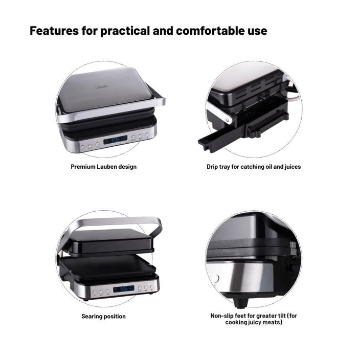 Lauben Contact Grill Deluxe 2000ST - Stolni kontaktni roštilj sa šest automatskih programa, uklonjivim pločama i LED zaslonom