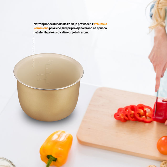 Keramička površina protiv lijepljenja Unutarnja posuda obložena je visokokvalitetnom keramičkom površinom koja sprječava neželjene okuse ili arome, osiguravajući da se hrana ne lijepi ili zagori.
