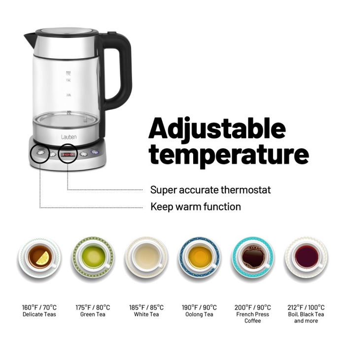 Savršen čaj ili kava bez kompromisa Ako ste jedan od ljubitelja čaja, sigurno znate da je za svaku vrstu potrebno posebno rukovanje, odnosno drugačija topla voda. S električnim kuhalom za vodu Lauben uz pomoć ugrađenog termostata možete postaviti točno onu temperaturu koja vam je potrebna. Možete odabrati temperaturu između 60-100°C u koracima od deset stupnjeva – tako da je možete postaviti točno onako kako vam je potrebno, bez potrebe da se oslanjate na unaprijed postavljene stupnjeve. Osim kave i čajeva svih vrsta, Lauben grijač će zagrijati i vodu za dječje kašice, za koje je potrebna voda niže temperature.
