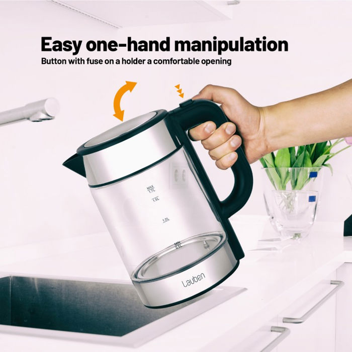 Odaberite temperaturu u rasponu od 60-100 °C u intervalima od deset stupnjeva. U grijaču Lauben odjednom ćete zagrijati do 1,7 l vode. Njegov trenutni iznos uvijek ćete znati po kamenu na staklu. Poklopac grijača opremljen je zaštitom od prolijevanja i lako se otvara pomoću gumba na ručki.