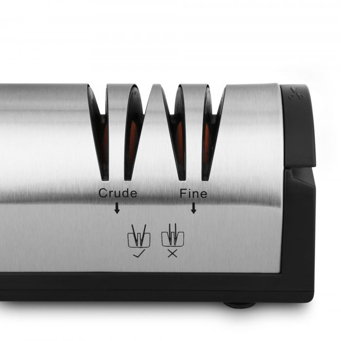 Lako brušenje S Lauben oštrilom za noževe 4700SB naoštrit ćete većinu noževa i sjekača u udobnosti vlastitog doma. Dodali smo i poseban utor za oštrenje škara, tako da će Lauben brusilica podnijeti i njih. Brusilica omogućuje dvije razine brušenja – grubu i finu obradu. S utorima za vođenje za održavanje pravog kuta i optimalnim kutom oštrenja od 15°, naoštrit ćete svaku oštricu kao pravi profesionalac. Samo uključite brusilicu, uključite je i umetnite oštricu koju želite naoštriti.